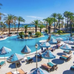 Riadh Palms presents a welcoming beachfront retreat in Sousse, Tunisia, perfectly suited for couples and families seeking sun, sea and engaging amenities. Nestled among swaying palms, this 4-star property blends oriental-inspired design with modern comforts, offering 650 rooms and 33 suites equipped with air conditioning, private bathrooms and secure magnetic card locks. Guests enjoy complimentary Wi‑Fi and in‑room climate control, ensuring a hassle‑free stay from arrival to departure.